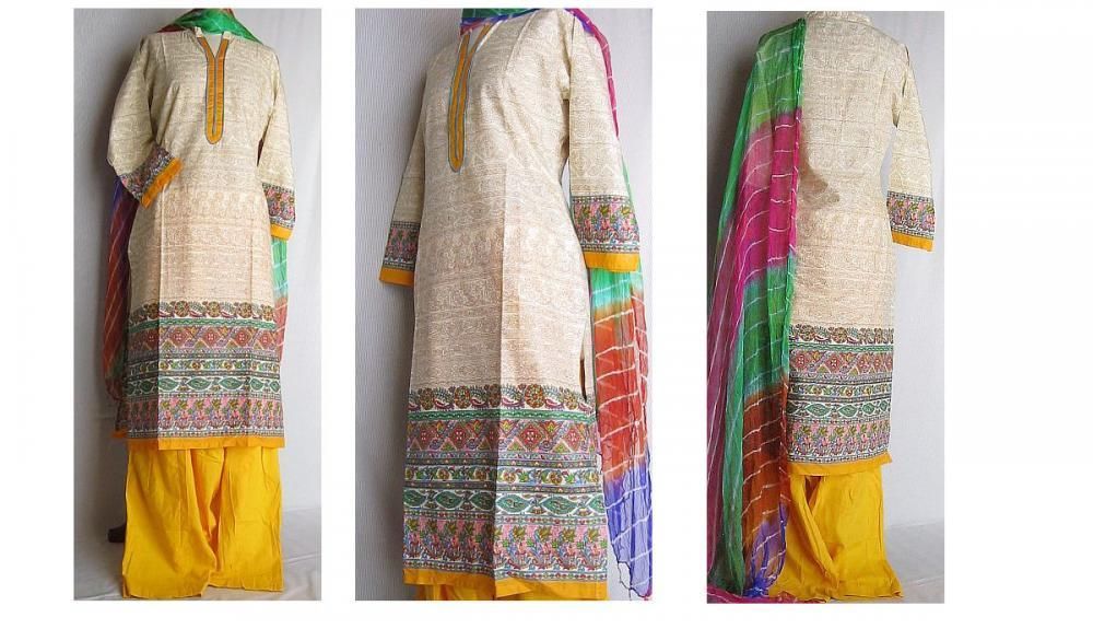 コットンパンジャビドレス-185/オフホワイト・イエロー・グリーン・多色