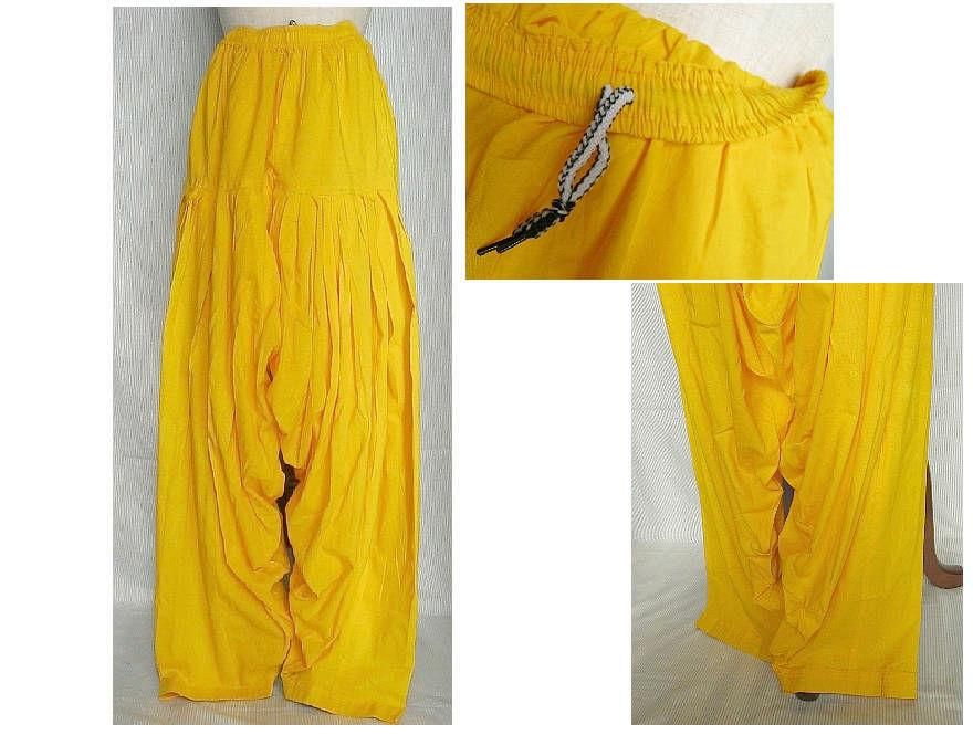 ウエスト下部分と、股下ラインにタックが入ったサルワールパンツ独特のラインがお楽しみいただけます。