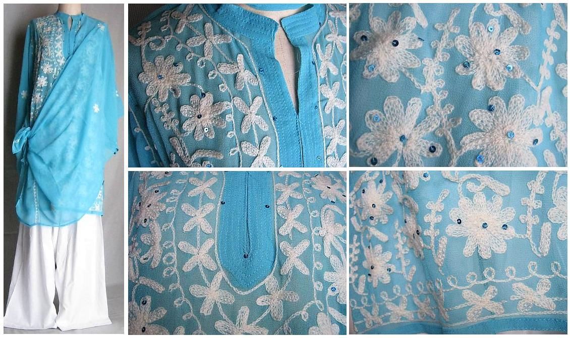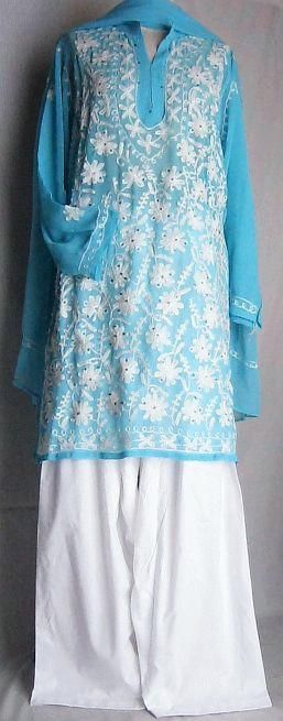手刺繍で作られたインドのチカン刺繍のパンジャビドレスです。