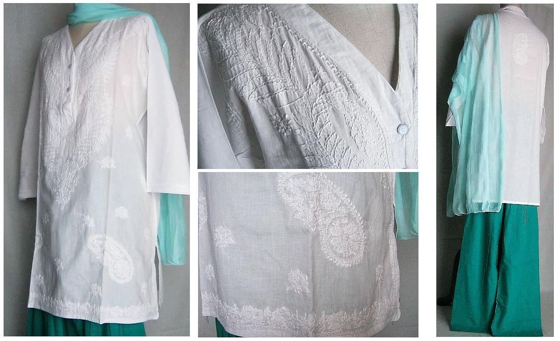 ■LL〜XLサイズのインドのチカン刺繍のパンジャビドレスです
