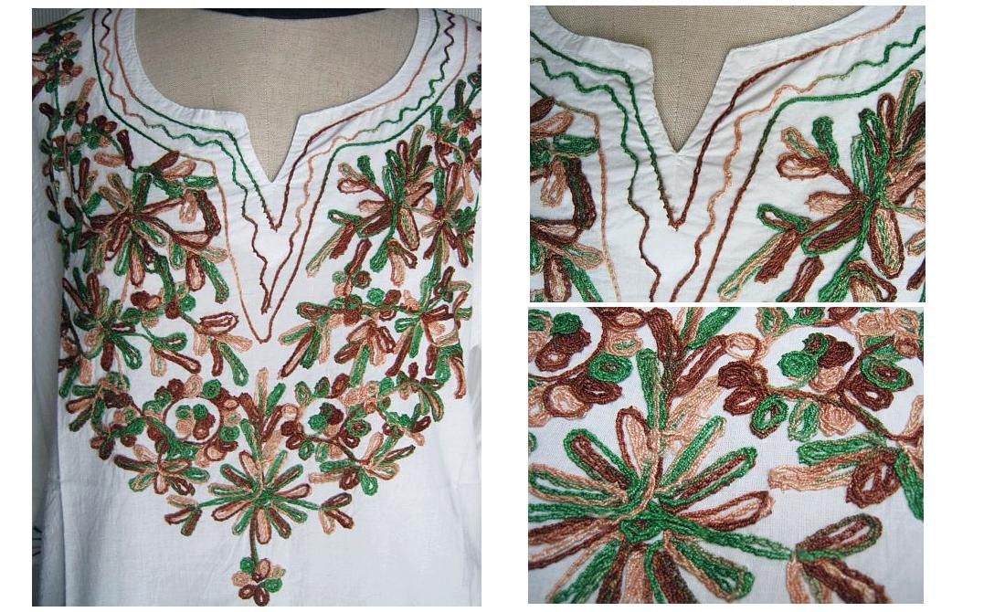 やや立体感のあるチェーンステッチのカジュアル刺繍で、カシミール刺繍に似た印象もあります。