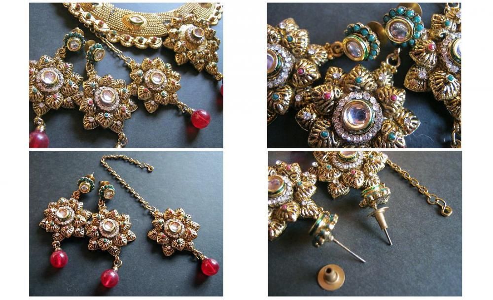 ネックレス、ピアス、ティカ(おでこのアクセサリー)の3点セットです。