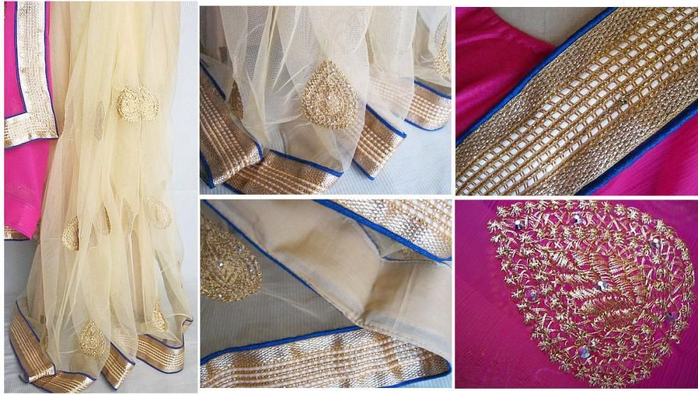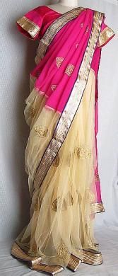 ・サリー生地:ショッキングピンク・クリームベージュ(スカートのオーガンジー部分)